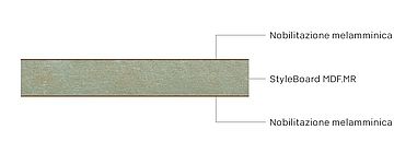 - StyleBoard MDF.MR: Pannello di fibra a media densità (MDF), con struttura omogenea.