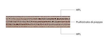 - La superficie decorativa e l'anima si compongono di piú strati di carta impregnate di resine termoindurenti; queste resine si fondono completamente durante il processo di fabbricazione che sotto l'effetto del calore e dell'elevata pressione si da origine ad un materiale stabile, resistente e irreversibile.
