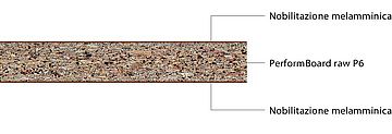 - PerformBoard raw Cfl P6: Pannello a base di legno tipo P6 secondo la norma EN 312, altamente resistente, per strutture portanti per l'utilizzo in aree asciutte.