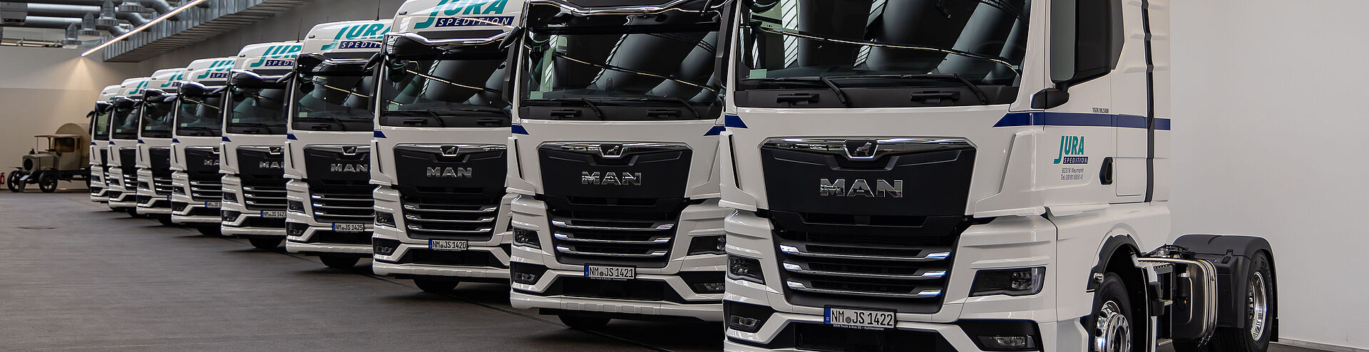 Gli istruttori di guida dell'azienda MAN collaborano da anni con JURA-Spedition e conoscono tanto i percorsi quanto i prodotti che vengono trasportati quotidianamente. Il programma "Connected CoDriver" aiuta attivamente i nostri conducenti nella vita di tutti i giorni, fino a tre mesi dopo la consegna. Gli istruttori di guida hanno la possibilità cambiare marcia sui veicoli e interagire con il conducente per così dire “on Tour”. L'obiettivo del programma è ridurre al minimo il consumo di carburante e utilizzare in modo efficace i sistemi installati. L'attuale consumo della flotta è in media di 30 litri per 100 km. Partiamo dal presupposto che con l'impiego di nuove motrici possiamo ancora una volta ridurre notevolmente il valore già molto buono per le nostre esigenze e per gli elevati pesi di trasporto.