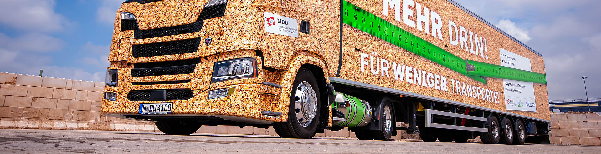 Il nuovo XL-Liner viene utilizzato per il trasporto del legno riciclato. Il legno usato, prodotto principalmente nella regione metropolitana di Norimberga, viene lavorato presso il Centro di trattamento di Norimberga DIE GRÜNEN ENGEL come materia prima secondaria ai sensi dell'Ordinanza sul legno usato e poi trasformato da Pfleiderer, con sede a Neumarkt, in pannelli truciolari. Un volume di carico più elevato per ridurre i trasporti e una propulsione alternativa della motrice sono stati individuati rapidamente come condizioni quadro per poter sfruttare al massimo i vantaggi economici ed ecologici. "L'alimentazione a GNL (“gas naturale liquefatto”) si è rivelata l'alternativa più all'avanguardia, considerando lo stato dell'arte. È risultata essere la migliore tra le opzioni possibili. Poiché si lavora con un peso di trasporto e volume di carico elevati, la decisione doveva tenere conto di caratteristiche quali la forza di trazione, la coppia, la portata e il consumo", spiega Möser-Benz, "Il semirimorchio è un prodotto speciale, appositamente progettato per il trasporto di cippato. In questo caso è stata prestata la massima attenzione al volume di carico e all'ottimizzazione di consumi e prestazioni. Un asse sterzante riduce l'usura degli pneumatici e il consumo di carburante, mentre il sistema speciale per un caricamento senza intoppi facilita il comfort e aumenta il volume di carico. Nei prossimi mesi raccoglieremo e analizzeremo insieme i dati relativi a prestazioni, consumo e emissioni, confrontandoli con i database dei trasporti tradizionali. A MDU, DIE GRÜNEN ENGEL e Pfleiderer consentirà di avere informazioni di vasta portata per il futuro orientamento nel settore dei trasporti.