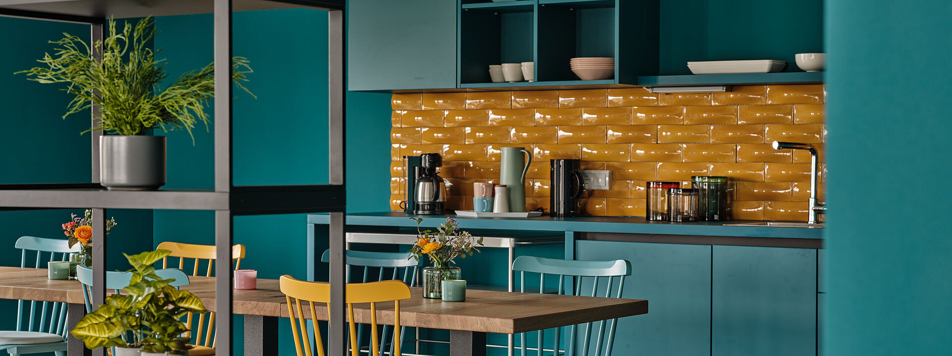 Sandra Caliebe: C'est certain ! Nous voulons aussi nous démarquer visuellement de la monotonie récurrente des établissements pour personnes âgées. À l’intérieur des appartements, nous avons toutefois opté pour un style un peu plus neutre. Beaucoup de nos hôtes apportent leurs propres meubles, auxquels ils se sont attachés au fil des ans. Ils sont de styles très différents et doivent pouvoir s’adapter à l’appartement. Pour optimiser l’utilisation des appartements, nous les équipons par ailleurs de meubles encastrés, tels que des armoires murales et une kitchenette bien pensée. Dans les salles de bains, l'accent est mis sur des couleurs plus vives, vert-de-gris, combinées avec du blanc et des décors en bois clair. Nous les utilisons pour les motifs des sols, comme pour les armoires ou étagères encastrées.