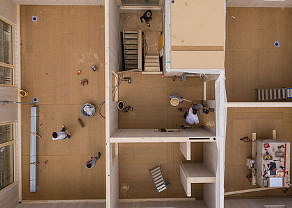 Les composants préfabriqués en bois permettent en outre d’optimiser en usine la consommation de matériaux et d’énergie et de réduire les déchets de construction.