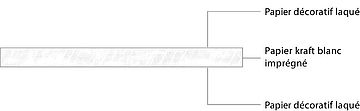 - Stratifié compact blanc : Âme en stratifié compact, massive, homogène et teintée en blanc, antichoc pour les applications à fortes charges.