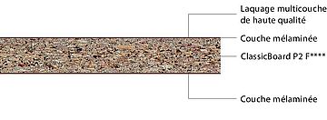 - ClassicBoard P2 F**** : Panneau de particules de bois à émissions réduites de type P2 convient aux applications non porteuses dans des conditions sèches.