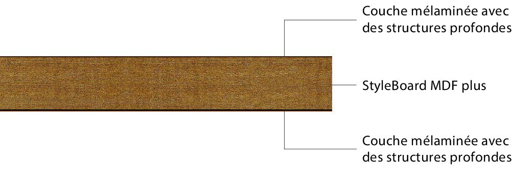 • StyleBoard MDF plus : Panneau de fibres de densité moyenne (MDF), avec une structure homogène.