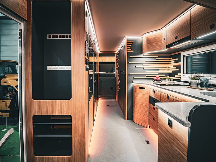 Le rallye Dakar est l'un des rallyes les plus difficiles au monde, sur longue distance et dans le désert, et constitue le test ultime pour l'homme et la machine. Dans cette compétition légendaire, des milliers de kilomètres doivent être parcourus sur un terrain accidenté et dans des conditions extrêmes. Le plus grand camion tout-terrain construit en République tchèque fait également partie du convoi de soutien. Grâce à son intérieur personnalisé, il offre un confort absolu dans les régions les plus inhospitalières du monde.