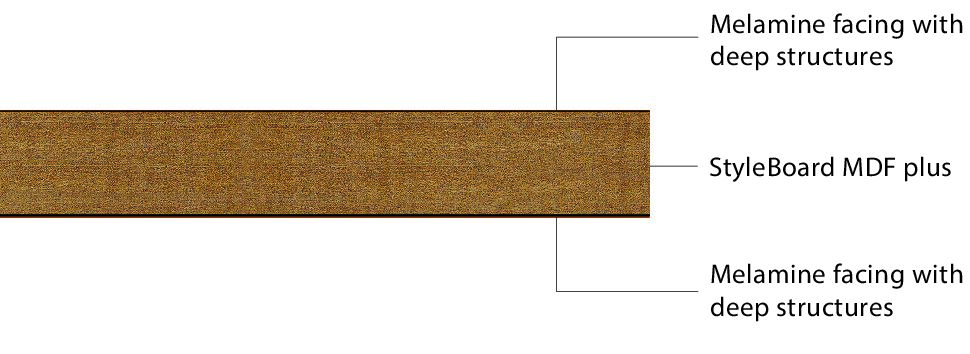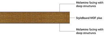 - StyleBoard MDF plus: Medium-density fibreboard (MDF), with a uniform structure.