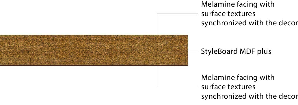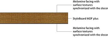 - StyleBoard MDF plus: Medium-density fibreboard (MDF), with a uniform structure.