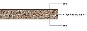 - ClassicBoard P2 F****: Low emission particleboard core type P2, suitable for non load-bearing purposes in dry areas.