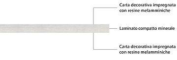 - Laminato compatto minerale: Laminato compatto costituito prevalentemente da componenti minerali ed eccellente in termini di resistenza. Ideale per gli ambienti che richiedono elevati standard in termini di progettazione antincendio.