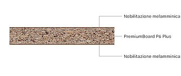 - PremiumBoard P6 Plus: Pannello a base di legno tipo P6 secondo la norma DIN EN 312, altamente resistente, per strutture portanti per l'utilizzo in aree asciutte.