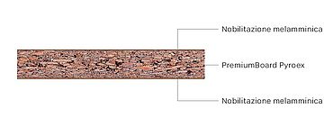 - PremiumBoard Pyroex: Pannello truciolare difficilmente infiammabile, ideale per applicazioni non di supporto in ambienti asciutti dove sono richiesti elevati standard in termini di reazione al fuoco.