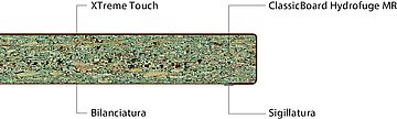 - ClassicBoard Hydrofuge MR: Pannello con incollaggio ureico dal rigonfiamento molto basso, secondo la norma EN 312, ideale per applicazioni non portanti in ambienti umidi.