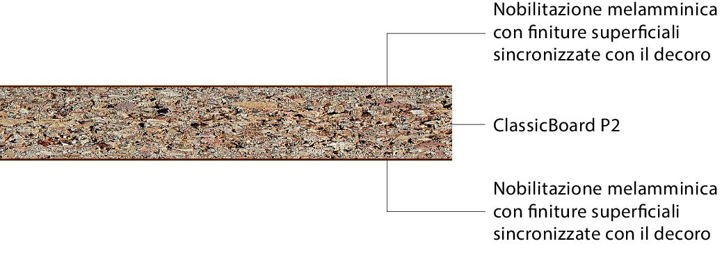 • ClassicBoard P2: Pannello truciolare ureico tipo P2 come da norma EN 312, ideale per applicazioni non di supporto in ambienti asciutti.