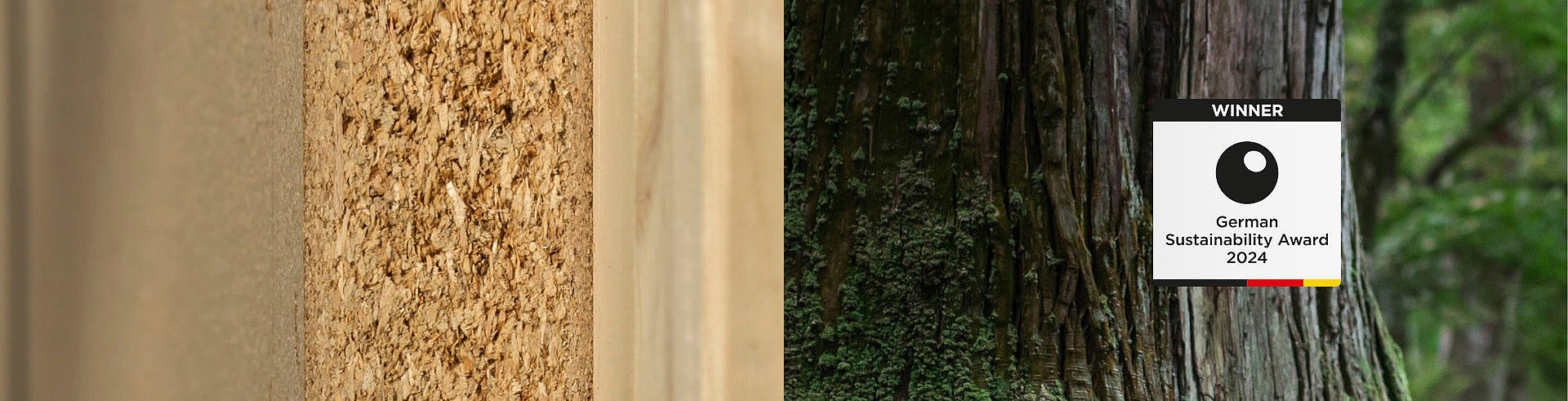 53,5% è la quota di legno riciclato post-consumo nella miscela di legno, percentuale ovviamente applicabile a tutti i prodotti.1 Grazie all’attuazione coerente della nostra strategia di riciclo, abbiamo raggiunto in anticipo l'obiettivo pari al 50% che ci eravamo posti per il 2025. La seconda frazione più grande, il 25%, è costituita da residui di segheria. Il restante 21% è rappresentato dal diradamento e dal legno spezzato proveniente dalla silvicoltura controllata in Germania e nei Paesi direttamente confinanti.