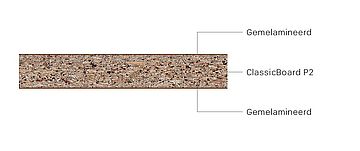 - ClassicBoard P2: Ureumharsgebonden houtspaanplaat type P2 volgens EN 312, geschikt voor niet-dragende doeleinden in droge ruimtes.