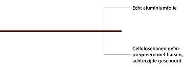 - Het decoratieve oppervlak is een gelakte aluminiumfolie. De materiaalkern bestaat uit papieren lagen, die met een duroplastische hars doordrongen zijn. Deze hardt tijdens het productieproces door hitte en hoge druk volledig uit en vormt een stabiel, resistent en niet reactief materiaal.