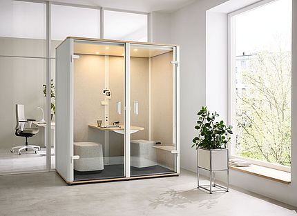 Thomas Wotschal: Nee, onze eerste ruimte-in-ruimte-serie is de cube. Deze is inmiddels aangekomen bij versie 4.0 en biedt uitgebreide comfortfuncties. Als echt high-end product is hij verkrijgbaar in meer dan 50 maten en uitvoeringen, met comfortfuncties zoals een luchtkwaliteitssensor, een gepatenteerd ventilatiesysteem en de wereldwijd unieke ION-CLOUD. Een cube 4.0 bevat werkelijk alles wat nodig is voor vermoeidheidsvrij en productief werken in een aangename sfeer.