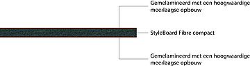 - Vochtbestendig (dikte zwelling < 4 % bij 24 uur wateropslag in gemelamineerde toestand)