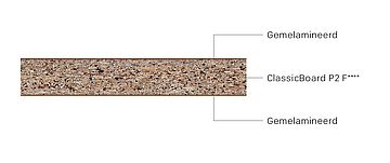 - ClassicBoard P2 F****: Emissie-arme houtspaanplaat type P2, geschikt voor niet-dragende doeleinden in droge ruimtes.