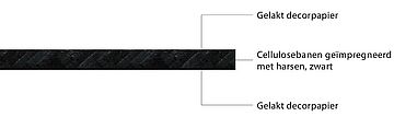 - Compacte kunststofplaat zwart: Homogeen zwart door-en-door gekleurde, massieve compacte kunststofkern, stootvast en vochtbestendig voor toepassingen met hoge belastingen.