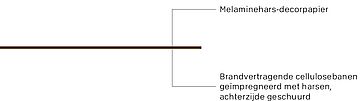 - De decoratieve oppervlakken en de materiaalkern bestaan uit papierlagen, die met duroplastische harsen doordrenkt zijn.Deze harden tijdens het productieproces door hitte en hoge druk geheel uit. Ze bouwen een stabiele, resistente en niet reactief materiaal.