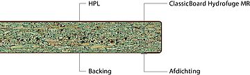 - ClassicBoard Hydrofuge MR: Ureumharsgebonden meubelplaten met verminderde diktezwelling conform EN 312, geschikt voor niet-dragende doeleinden in vochtige ruimten.