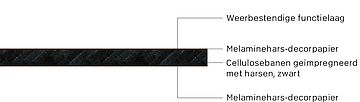- Compacte kunststofplaat zwart: Homogeen zwart door-en-door gekleurde, massieve compacte kunststofkern, stootvast en vochtbestendig voor toepassingen met hoge belastingen.