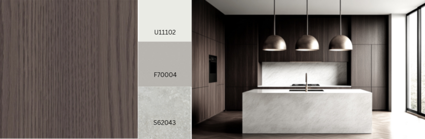 The American walnut Timberton Walnut has a varied layout throughout; striped sections and areas with cut flowers have been harmoniously combined, with individual branches adding accents. The soft transitions of the open grain surfaces and the balanced interplay of colours create an authentic and lively effect. The sharp-edged, elongated pores of the synchronised structure emphasise the naturalness of the wood. The silky matt finish perfectly highlights the character of the walnut. Timberton Walnut is intended as a synchronised structure under Deep Flow for MFB. Rochester RO or Florence FL are recommended as combination structures. The structure/decor combination will be available in Gütersloh from January 2026 in three colour variants