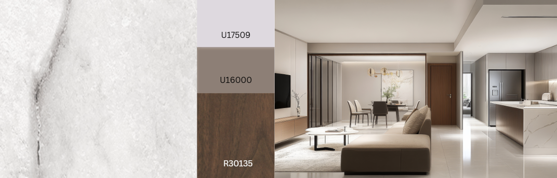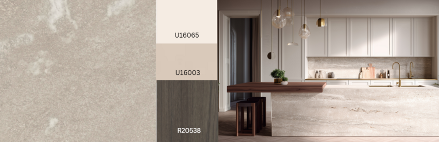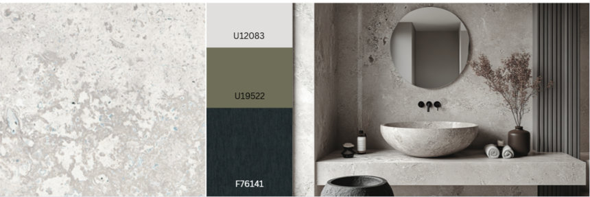 The subtle marble structure of Palermo has a highquality, elegant look. The matt surfaces, which are open over large areas, are alternately smooth and roughened, and in some places slightly broken up. Deep matt, rough veins divide the surfaces. Like meandering streams, they vary in width and depth, spreading out or narrowing to a thin line. The small format and random layout make this fine stone universally combinable. This uncomplicated structure is ideal for marble decors, but also for flat stones, slate or even material decors such as metal and concrete, as well as plain decors. Palermo is scheduled for Deep Flow for MFB in Gütersloh in January 2026 and in HPL for Arnsberg from March 2026.