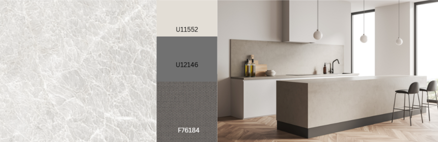 Het kiezen van de juiste textuur is ook eenvoudig met Nizza: Ceramo geeft het een keramisch gevoel, Sandpearl ziet er strak en modern uit en Porto voelt meer aan als graniet. Een andere versie is S62049 Nizza Grey.