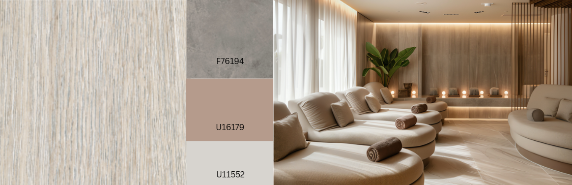 De Azahara Chestnut, met zijn levendige ontwerp met hele bloemen, is overal aangebracht. De buitenste nerf omringt dynamisch de compacte bloemen en kleine takjes. De delicate, heldere nerflijnen accentueren de zacht vloeiende achtergrond. Licht verlichte gebieden geven het decor een zijdezachte glans. De authenticiteit van het hout wordt benadrukt door de gesynchroniseerde structuur, die vooral het effect van de bloemen en kleine knoesten versterkt. Scherpe, delicate poriën en een matte afwerking maken de combinatie van decor en structuur tot een zintuiglijke ervaring. Azahara Chestnut is bedoeld als gesynchroniseerde structuur onder Deep Flow voor MFB. Rochester RO of Florence FL worden aanbevolen als combinatiestructuren. De combinatie van structuur en decor zal vanaf januari 2026 in Gütersloh verkrijgbaar zijn in drie kleurvarianten.