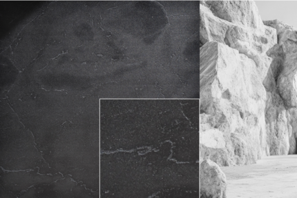 De compacte zandsteen Trias toont de fijne details van natuursteen met open poriën. In deze versie wordt hij geleverd in sterke antracietkleuren zonder duidelijke richting. De vele kleine, krijtachtige gaatjes in verschillende dieptes en vormen zorgen ervoor dat de steen er echt uitziet, net als de fijne Porto-textuur. Trias Anthracite past bij alle soorten hout, metaal en textielontwerpen. Het is een zacht, niet-directioneel alternatief voor travertijn. Een andere kleurversie: S62043 Trias.