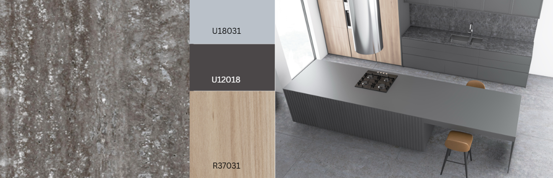 Scuro is een gedurfd alternatief voor klassiek natuurlijk travertijn. Het vertoont een mix van koele grijze en antracietkleurige tinten met een sterk contrast op een lichte basis. De niet-directionele Porto-textuur brengt de sterke verticale nerf in evenwicht. Diepe gaten en sterke details zijn weggelaten. Dit zorgt voor een glad en levendig oppervlak, perfect voor horizontaal gebruik op tafels en werkbladen.