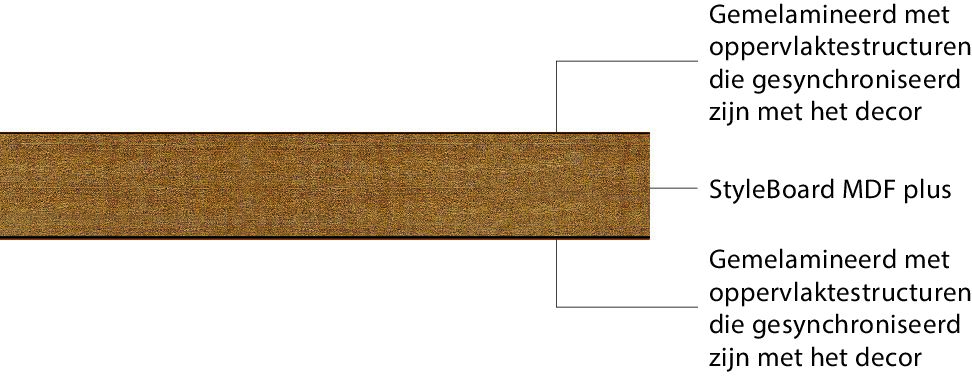 - StyleBoard MDF plus: Vezelplaat met gemiddelde dichtheid (MDF), met homogene opbouw.