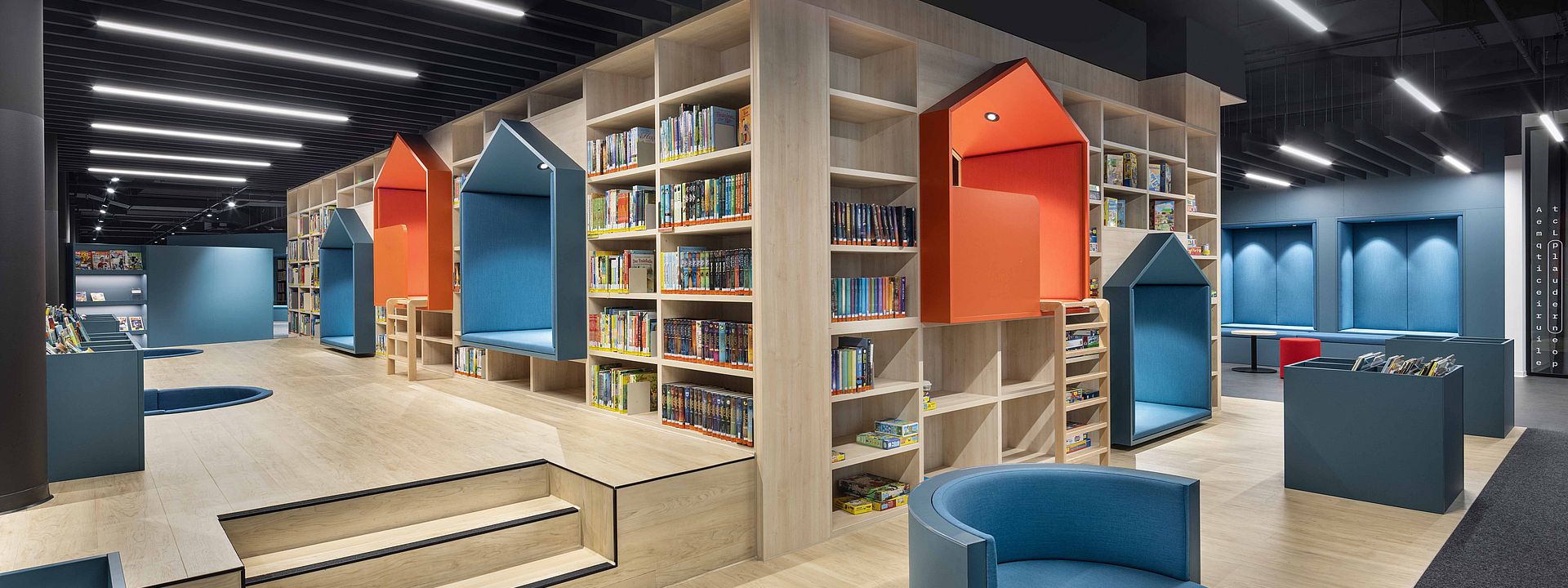 De stadsbibliotheek van Heilbronn is een belangrijk onderdeel van het cultuur- en winkelcentrum Theaterforum K3, een gebouwencomplex uit 2001 met een bioscoop, theater, hogeschool en andere instellingen en bedrijven. De stad heeft nu besloten om de verouderde bibliotheekruimtes te verbouwen en door middel van functionele zonering en diverse gebruiksfuncties een eigentijdse uitstraling met een hoge verblijfswaarde te creëren. Na een verbouwings- en renovatiefase van ongeveer twee jaar is een identiteitsbepalende plek ontstaan die ruimte biedt voor communicatie, uitwisseling en generatieoverschrijdend leren.
