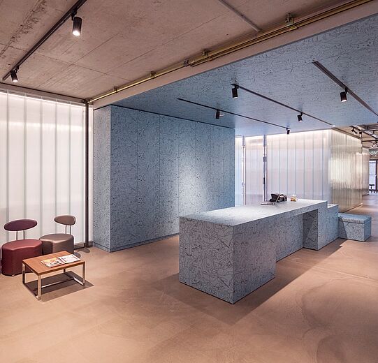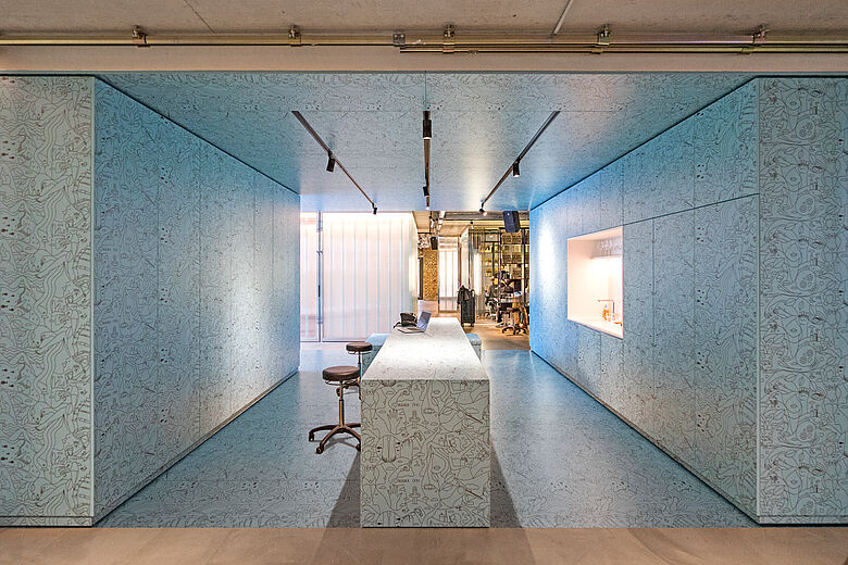 De realisatie van dit idee werd onder andere mogelijk door de inzet van Pfleiderer Individual. Door de innovatieve digitale-drukmogelijkheden voor houtmateriaal is het mogelijk om eigen motieven als individuele decors te realiseren – op met gemelamineerd DecoBoard, als hogedruklaminaat (HPL), als HPL-compacte kunststofplaat en als HPL-sandwichpaneel. In de Panzerhalle werd DecoBoard P2 in corpus- en frontend-kwaliteit gebruikt. Bijzonder voordeel: de individualisering is niet van invloed op de hoge uitgangskwaliteit van het materiaal en zijn onderhoudsarme oppervlak; de interieurbouw kan zonder concessies aan de kwaliteit, verwerkbaarheid en duurzaamheid plaatsvinden. Dat hierbij een balans is gevonden tussen mooi, praktisch en economisch ziet ook projectontwikkelaar Marc Sillaber. Na bijna vijf jaar is hij nog altijd overtuigd van de individuele digitale drukmogelijkheden bij Pfleiderer – en hij brengt het ook in 2021 weer ter sprake bij nieuwe projecten.