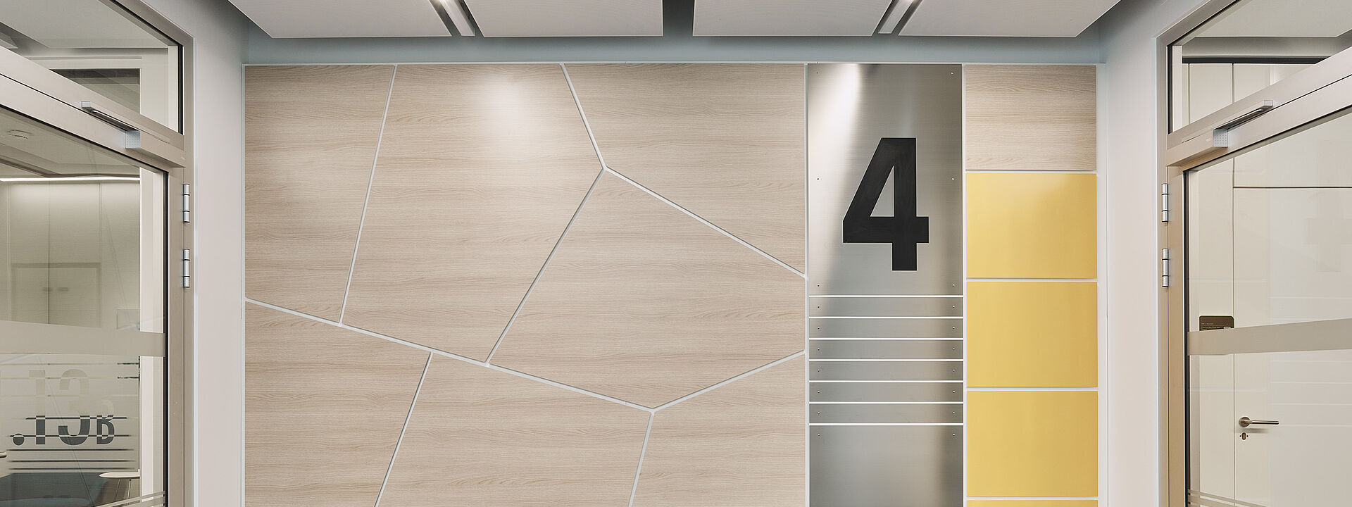 Geleid door het idee om een speciale feel-good sfeer te creëren voor de 120 werknemers, werd een consistent kleurenconcept geïmplementeerd in het interieurontwerp. Zelfs de vluchtroutes, met hun zeer specifieke brandveiligheidseisen, werden geïntegreerd in het algemene ontwerpconcept.