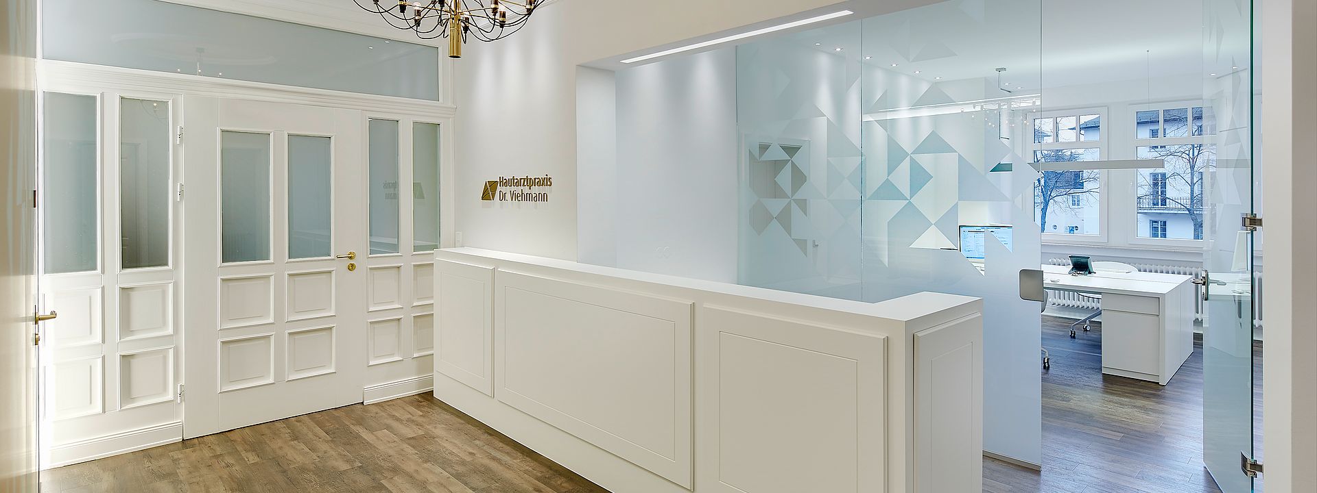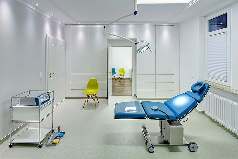 Het ontwerpen van artsenpraktijken is al lang een taak van architecten geworden. De standaardinrichting volstaat al lang niet meer om patiënten blijvend aan zich te binden. In Gießen is een dermatoloog erin geslaagd om in een oud gebouw dat gespaard is gebleven van de oorlog en de naoorlogse modernisering, een aantrekkelijke praktijk van 160 vierkante meter in te richten.