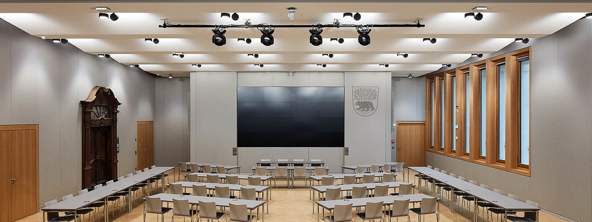 The Pfleiderer materials do not only show their special quality at first glance. With their easy-to-clean surfaces and the fascinating anti-fingerprint effect, they ensure, especially on the dark decors, that the Bernau Town Hall always receives its visitors in an attractive manner. The doors made with Pfleiderer products deserve special attention: just like the wood-look models, they are recessed flush into the wall surfaces. Thanks to the use of Duropal SolidColor with a solid-coloured core, the mitre joints also present an absolutely harmonious picture that implements the straight lines of the design philosophy down to the last detail.