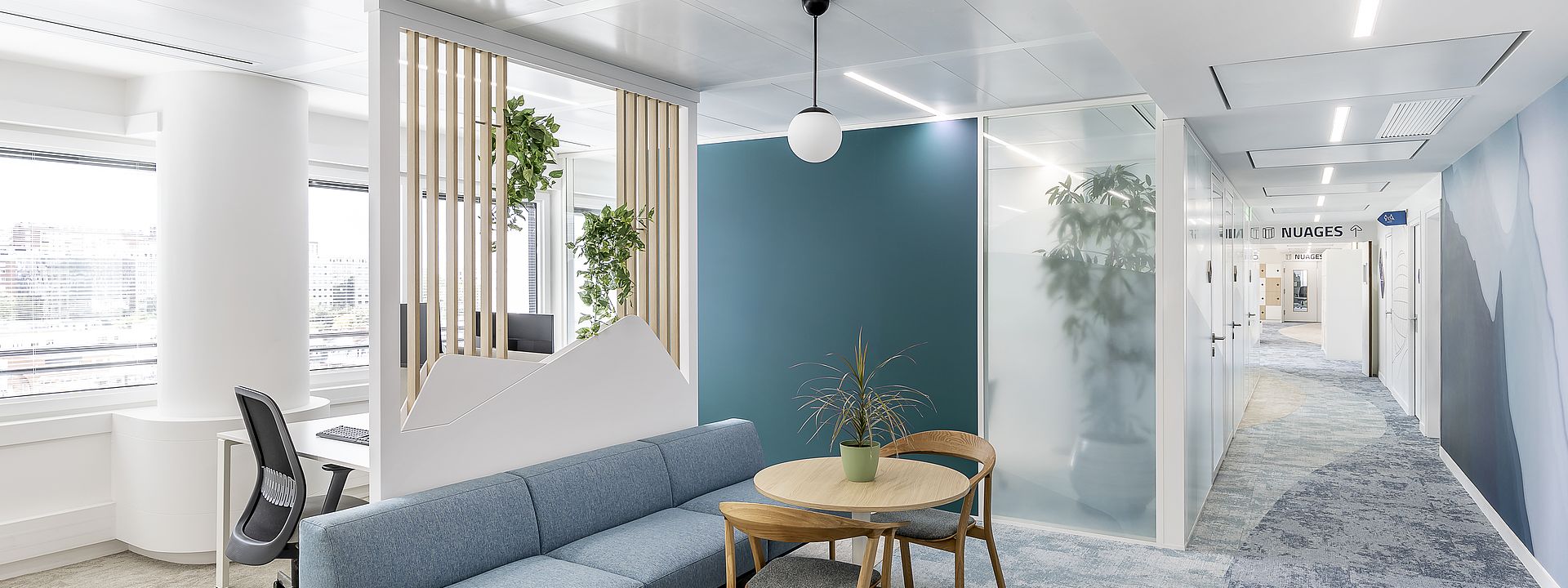 This modern office project is located in the Hauts-de-Seine department, to the west of Paris. Representing a new generation of working environments, it combines functional interior design with aesthetic clarity. The interiors impress with their carefully coordinated combination of colours, textures and surfaces. The use of high-quality materials ensures an attractive appearance and a modern, bright and inspiring working atmosphere.