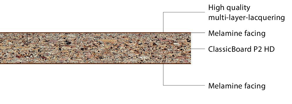 - ClassicBoard P2 HD TSCA: Urea-formaldehyde resin bonded particleboard, Type P2 according to EN 312, high-density and with improved surface properties.