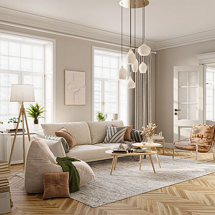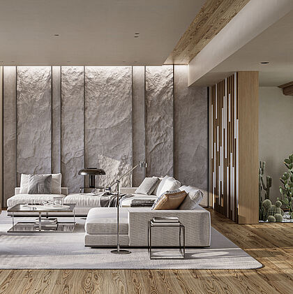 The pure shades of grey provide the perfect frame for chromatic colours, warm woods and materials. Without an inherent colour content, they adapt perfectly. Alabaster matches NCS Code 1000-N; Greyhound matches NCS 5000-N and is clearly darker.