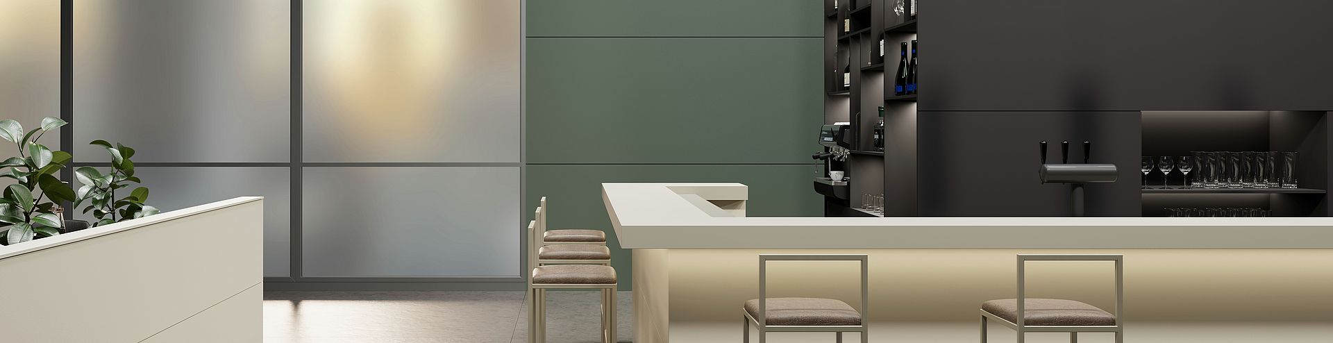 Our XTreme Products work equally well for vertical and horizontal applications. Find the right backing material for every purpose and create matt kitchen cabinet doors and storage solutions, extending to busy areas like counters, bars, and work surfaces, all with a touch of luxury.