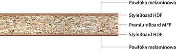 - PremiumBoard MFP Hybrid: W przypadku produktu PremiumBoard MFP Hybrid mamy do czynienia z kombinacją płyty PremiumBoard MFP, stanowiącej warstwę środkową, oraz płyt HDF, stanowiących warstwy wierzchnie o grubości 2 mm. Dodatkowo mogą być one pokryte po obu stronach laminatem. Płyty PremiumBoard MFP i HDF łaczone są za pomocą kleju PVAC (klej D4). Ten typ płyty hybrydowej, dzięki izotropowej odporności na gięcie oraz wytrzymałości na wyrywanie śrub, przeznaczony jest do zastosowań, w których liczy się stabilność oraz odporność na obciążenia.