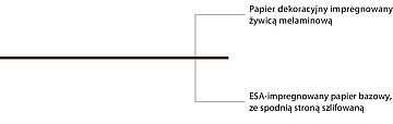 - Przy produkcji elementów płaskich zaleca się konstrukcję symetryczną, tzn. obustronnie identyczny HPL. W przypadku zastosowania warstwy przeciwprężnej (lub innego HPL) istnieje ryzyko wypaczania.