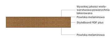 - StyleBoard MDF plus: Płyta pilśniowa średniej gęstości (MDF), o jednorodnej strukturze.