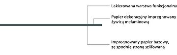 - Przy produkcji elementów płaskich zaleca się konstrukcję symetryczną, tzn. obustronnie identyczny HPL. W przypadku zastosowania warstwy przeciwprężnej (lub innego HPL) istnieje ryzyko wypaczania.
