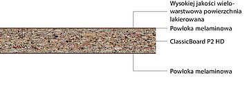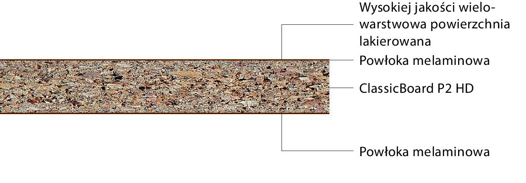 - ClassicBoard P2 HD TSCA: Płyta wiórowa wiązana żywicą mocznikowo-formaldehydową, typ P2 zgodnie z normą EN 312, o wysokiej gęstości i ulepszonych właściwościach powierzchniowych.